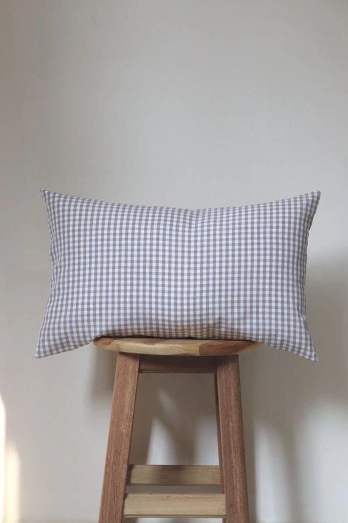 Capa de Almofada Simples | Xadrez Médio Bege | 100% Algodão | 30x50 (Rinzeira) | SOB ENCOMENDA