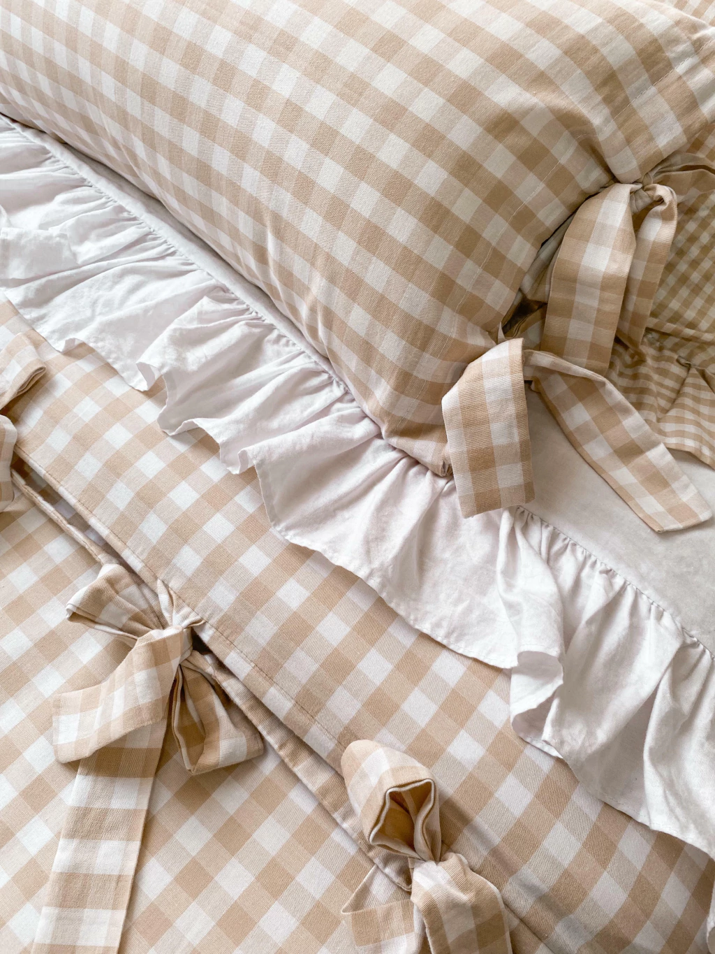 Capa de Edredom com Laços + (2) Fronhas DE BRINDE | Tricoline Fio-Tinto Xadrez Bege | 100% Algodão | SOB ENCOMENDA